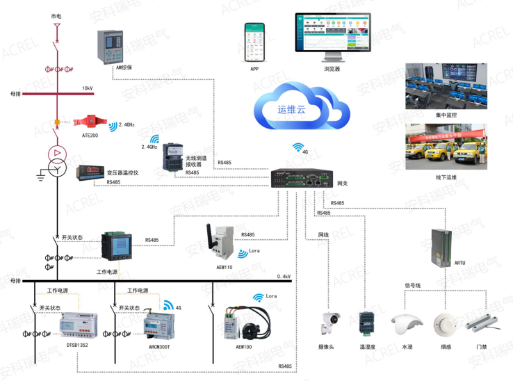 AcrelCloud-1000電力運維云平臺采用多功能電力儀表、無線通信、邊緣計算網(wǎng)關及大數(shù)據(jù)分析技術,通過智能網(wǎng)關采集現(xiàn)場數(shù)據(jù)并存儲在本地,再定時向云平臺推送數(shù)據(jù)。平臺可同時接入數(shù)以千計的用戶變電站數(shù)據(jù)。平臺采集的數(shù)據(jù)包括變電所電氣參數(shù)和環(huán)境數(shù)據(jù),包括電流電壓功率、開關狀態(tài)、變壓器溫度、環(huán)境溫濕度、浸水、煙霧、視頻、門禁等信息,有異常發(fā)生10S內(nèi)通過短信和APP發(fā)出告警信號。平臺通過手機APP下發(fā)運維任務到指定人員手機上,并通過GPS跟蹤運維執(zhí)行過程進行閉環(huán),提高運維效率,即時發(fā)現(xiàn)運行缺陷并做消缺處理。