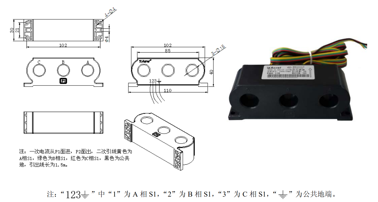 產(chǎn)品外形美觀,接線方便。外殼材料選用阻燃 PC/ABS 合金,作為交流電流信號采集元