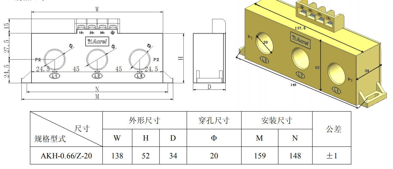 AKH-0.66SM自控儀表用電流傳感器(雙繞組電流傳感器)