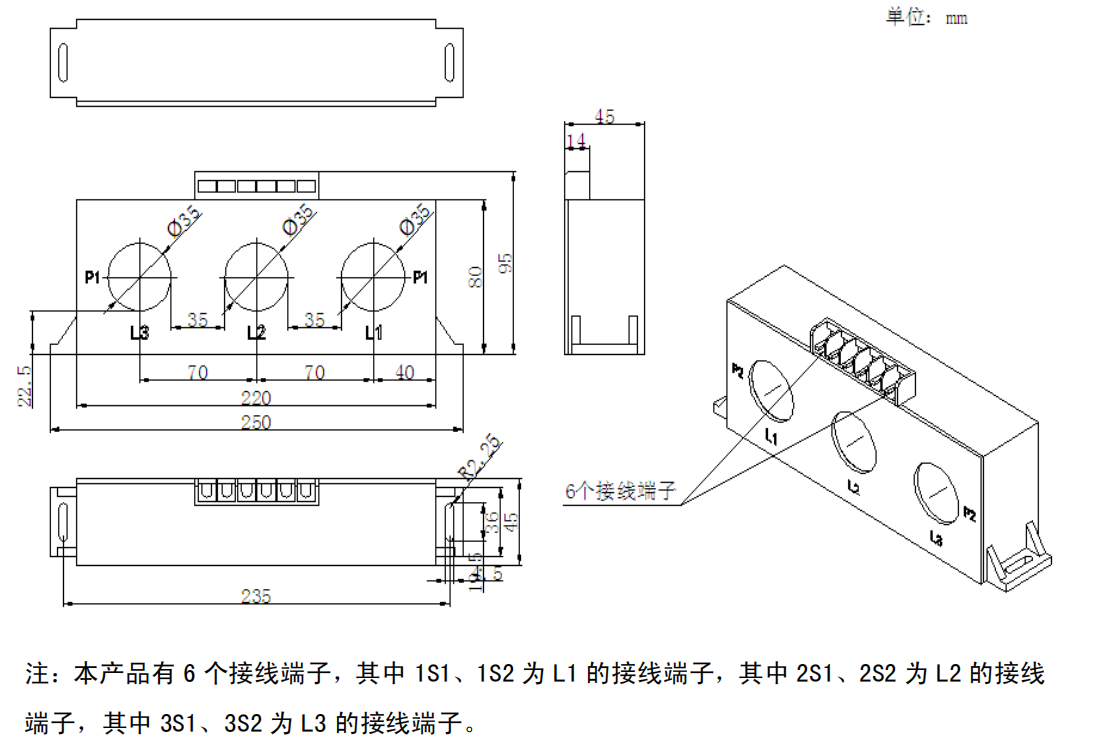 產(chǎn)品外形美觀,接線方便。外殼材料采用 PPT,作為交流電流信號采集元件,一般與