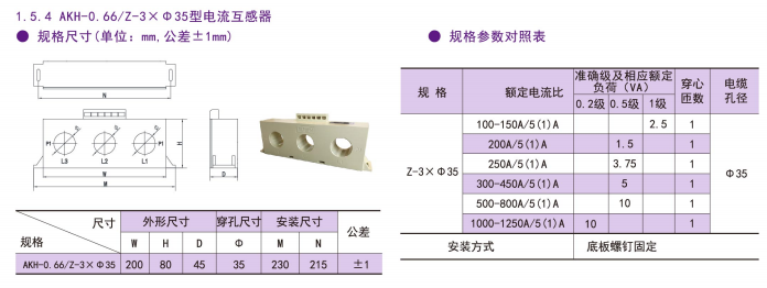 AKH-0.66 Z型系列三相導(dǎo)軌式電流互感器