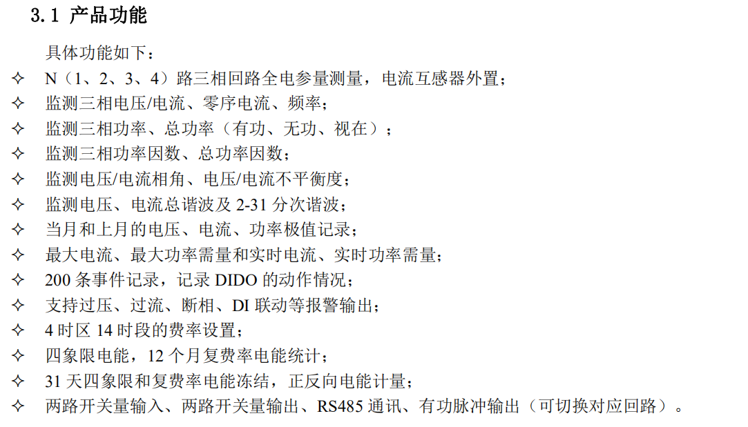 主要用于多個三相回路的全電參量測量,最多可同時接入六個三相回路、一個單相回路的電流輸入。可直接或間接測量電壓電流、功率、功率因數(shù)、相角、不平衡度、諧波等參數(shù)。