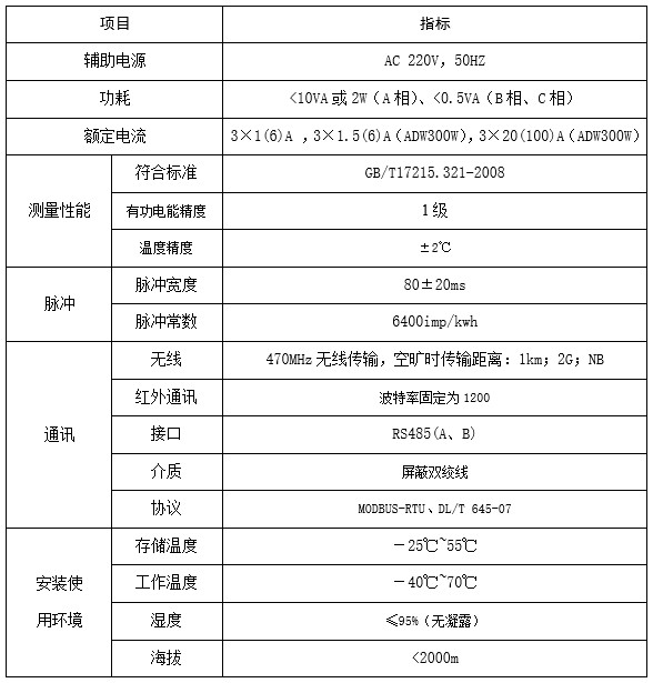 技術(shù)要求:額定電流3×1.5(6)A(ADW300W),3×20(100)A(ADW300W)