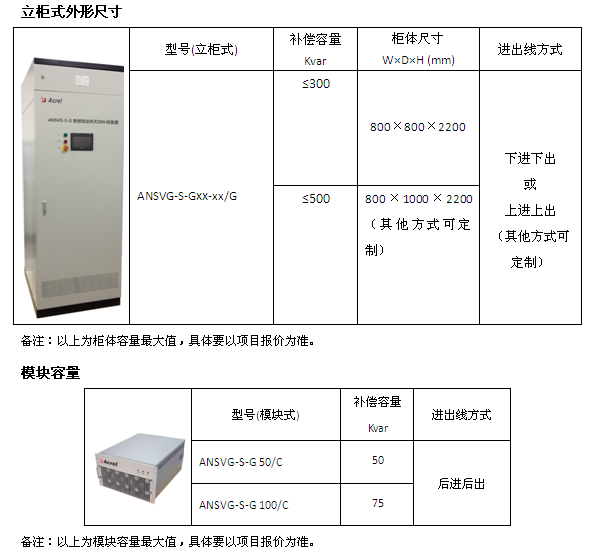 智慧型動態(tài)無功補(bǔ)償裝置主動根據(jù)系統(tǒng)的線性動態(tài)需求,自動調(diào)節(jié)有源及無源模塊的輸出配比,ANSVG-S-G整機(jī)主要是由ANSVG-S-G模塊、無源補(bǔ)償電容器(TSC)、液晶顯示器組成。