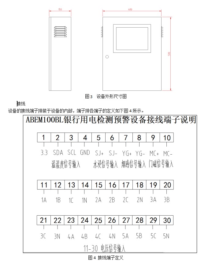 ABEM100BL型銀行用電檢測預警設備(以下簡稱“設備”)是安科瑞自主研發(fā)的集監(jiān)視、報警、管理和上傳于一體的設備,該設備主要安裝現場,采用壁掛式的安裝方式,用來采集現場的各種電參量和信號,主要包括故障電弧、剩余電流電流、溫度、電壓、電流、功率電能等,設備可以通過4G信號上傳至云平臺。