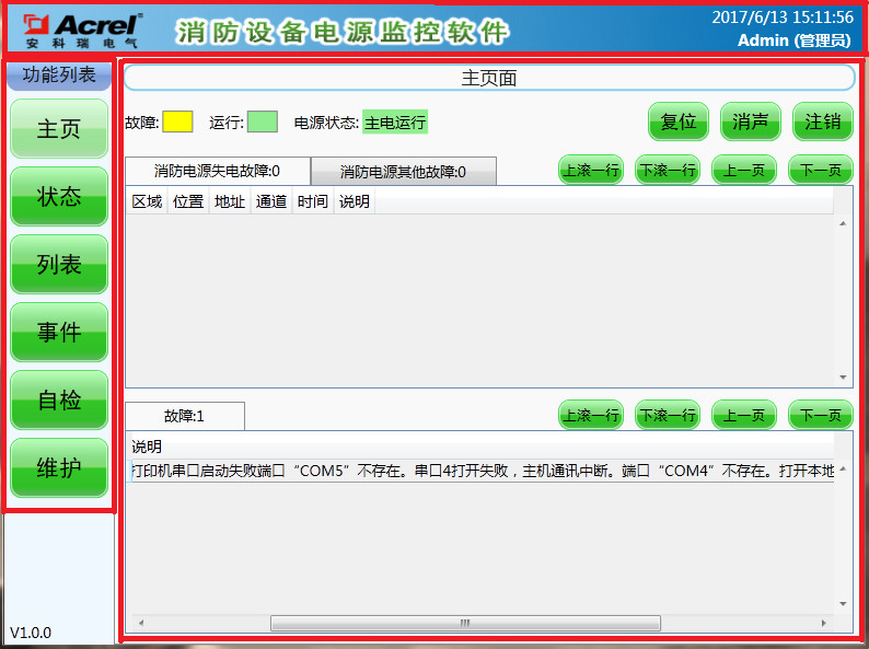 該檢測功能為“管理員”和“操作員”方可進(jìn)行的操作功能,主要用于設(shè)備自檢和對監(jiān)控系統(tǒng)柜體面板指示燈的手動檢測。