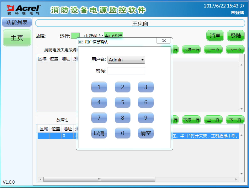 選擇用戶名并輸入正確的密碼后,系統(tǒng)狀態(tài)欄會顯示當(dāng)前的登錄用戶。本軟件針對的任意遠(yuǎn)控操作均需權(quán)限登錄后方可操作,即防止無關(guān)人員誤操作。