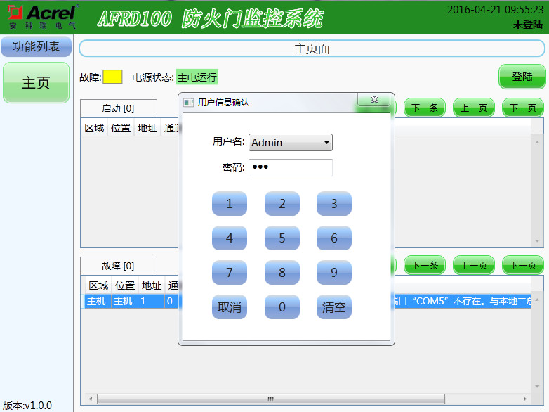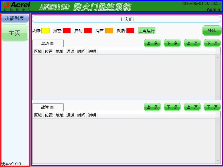 包含“登陸”按鈕、“界面標題”、“功能列表”、“系統(tǒng)狀態(tài)欄”四部分組成,可以快速查詢當前監(jiān)控狀態(tài),也可用于工作人員登錄操作。