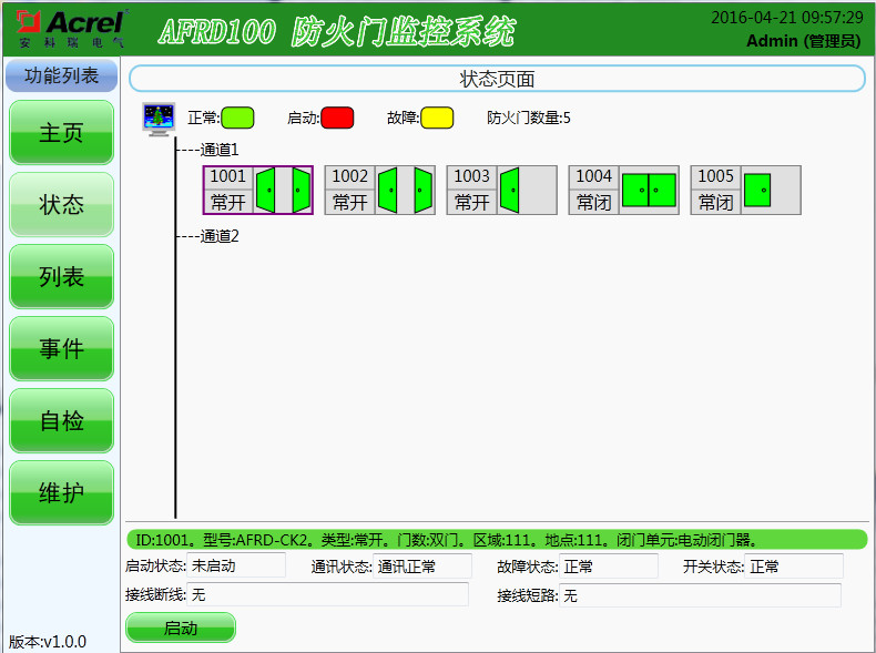 該界面以圖形化顯示方式直觀的展現(xiàn)了被監(jiān)測的防火門的工作狀態(tài),點擊防火門圖標后,系統(tǒng)會顯示該防火門的詳細信息。