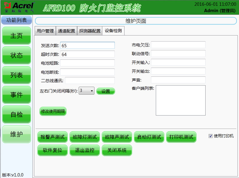 該界面可以直接查看和設(shè)置一些系統(tǒng)運行參數(shù),獨立測試監(jiān)控器部分功能,但只有“管理員”及其以上級別才有操作權(quán)限。