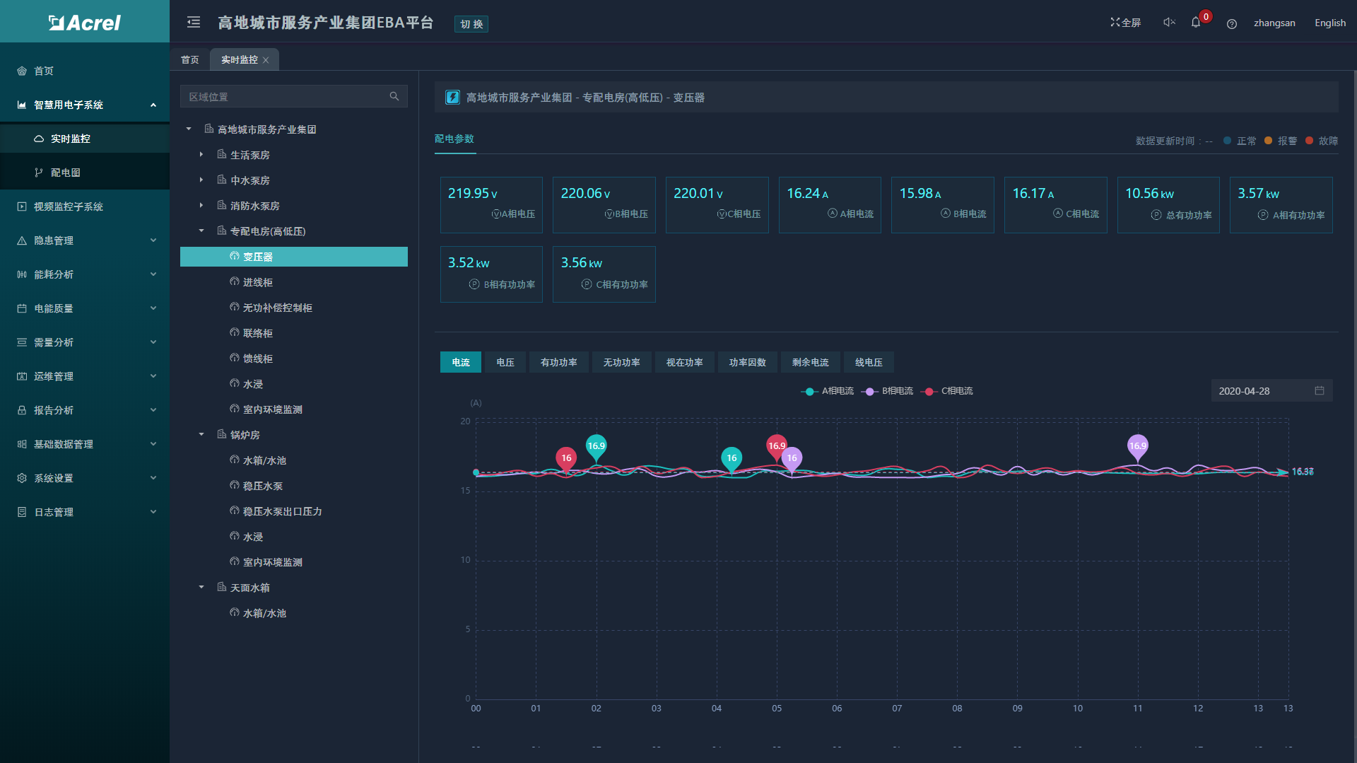 系統(tǒng)提供諧波監(jiān)測和三相不平衡分析功能。