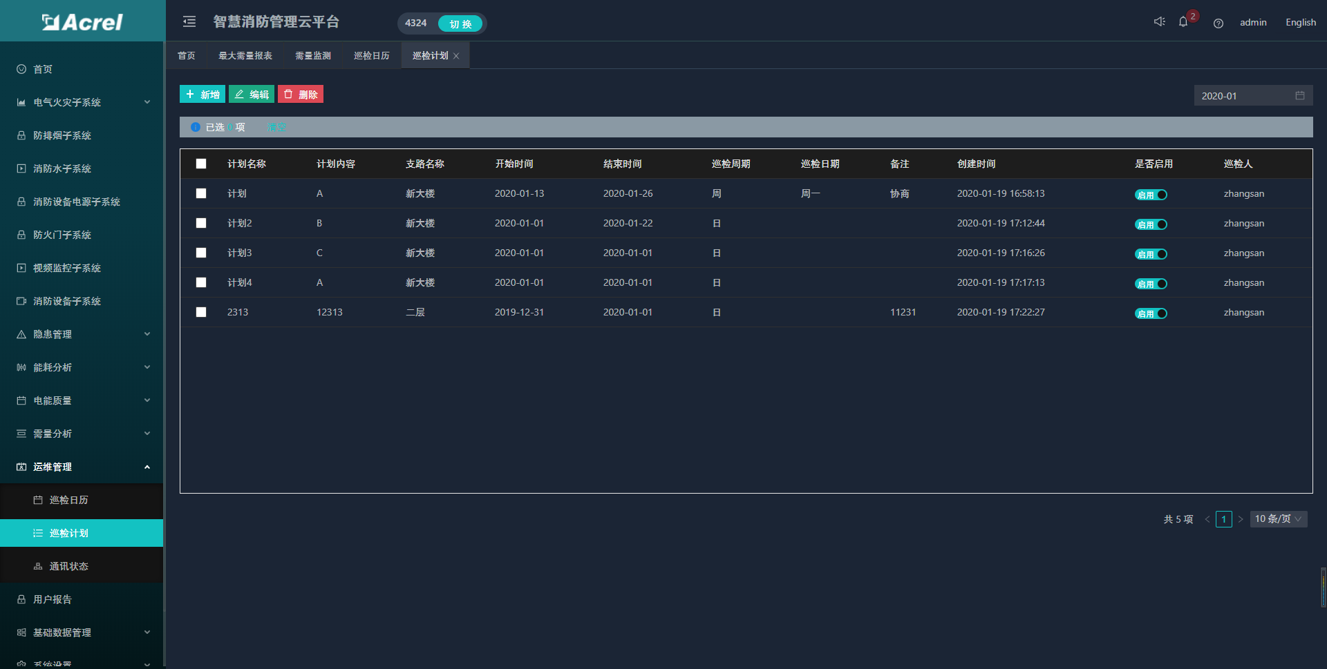 (6)消防設(shè)備子系統(tǒng):該子系統(tǒng)能夠?qū)⒚總€建筑、項目節(jié)點的所有消防設(shè)備和資產(chǎn)納入管理,對一些消防栓、滅火器、噴淋和消防大隊地址等著重標(biāo)注,日常的巡檢和維護(hù)都需要納入計劃,在緊急情況下,會聯(lián)動GIS調(diào)度子系統(tǒng)進(jìn)行調(diào)度。